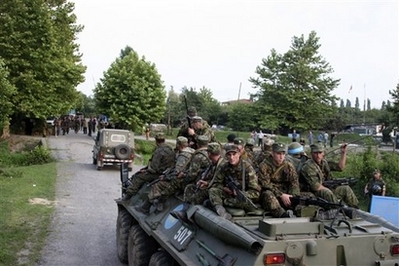 俄羅斯士兵乘裝甲車進入阿布哈茲。