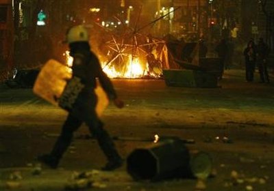 持續了三天的騷亂從雅典蔓延至全國十多個城鎮。在首都市中心廣場,一棵巨型圣誕樹8日晚被一批青年放火燒毀,一些青少年洋洋得意,在火堆前面拍照留念,更有不少人用希臘語高唱圣誕歌。