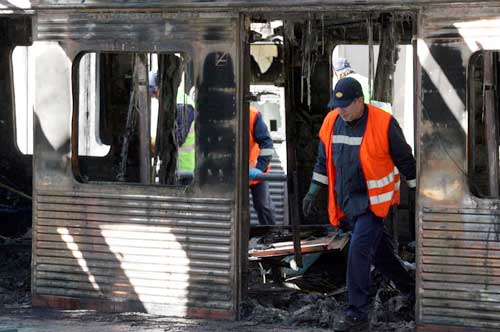 30名消防隊(duì)員最后將大火撲滅,但是其中一列車上的6節(jié)車廂被毀,另一列車上有3節(jié)車廂被毀。