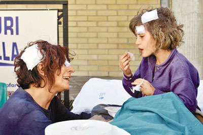 災區一片愁云慘霧下,亦偶有振奮人心的消息。意大利安莎通訊社報道,救援人員昨晨在拉奎拉的瓦礫中救出一名98歲老婦,她的健康狀況良好。她在等候救援30小時,自言一直在“做針線活兒”。消防員又在瓦礫中救出2歲小女孩,她的母親為了救她,用身體擋住瓦礫,傷重不治。