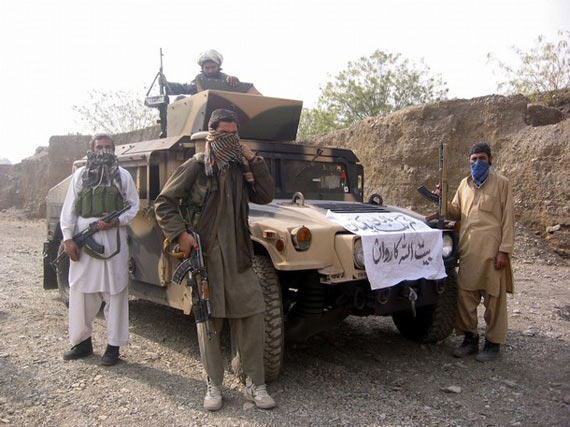 塔利班武裝分子開(kāi)著搶來(lái)的“悍馬”在巴基斯坦部落地區(qū)四處巡邏。