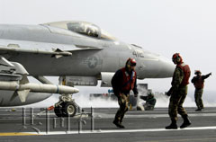 中新網3月17日電 據日本共同社報道,美國海軍16日邀媒體記者觀摩了正在日本海參加美韓聯合軍演“關鍵決斷”(Key Resolve)的F/A-18戰斗攻擊機在“斯坦尼斯”號核動力航母上的起降訓練。