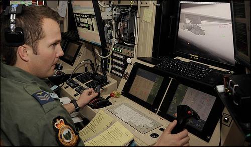 坐在扶手椅上的飛行員駐扎在美國內華達沙漠基地中心的一間地面控制站內。與電子游戲玩家一樣,他們使用一個手柄來操縱價值6百萬英鎊的無人機,手柄上有一個開火鍵。“收割者”無人機上的偵察攝像機能確定敵方狙擊手、恐怖分子隱藏地點的位置,干掉恐怖分子的機槍陣地、武器庫、路邊炸彈。“收割者”無人機飛行員、32歲的基爾南中校來自諾丁漢。他說:“在這里,你每天都在前線,雖然距阿富汗有12874公里的距離,你每天都在這里執行飛行任務以支援駐阿富汗的部隊。”