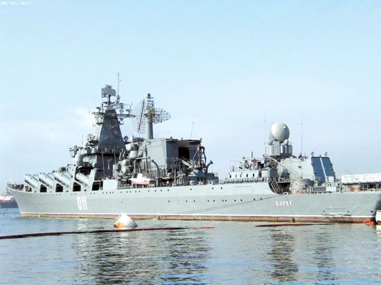 俄羅斯海軍也派出素有“航母殺手”之稱的“瓦良格”號導彈巡洋艦參加此次閱兵式。該艦已于13日從符拉迪沃斯托克的金角灣出發(fā)前往中國。“瓦良格”號是俄羅斯太平洋艦隊的旗艦,主要武器為16枚SS-N-12超音速反艦導彈,可攜帶1000公斤裝藥的常規(guī)彈頭或射程達300海里的戰(zhàn)術核彈頭。