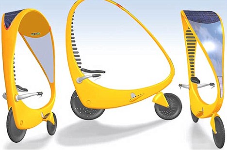 據(jù)英國媒體25日報道,這種亮黃色的太陽能自行車外觀看起來和普通的自行車沒有多大區(qū)別;不過在自行車上卻載有一個可以接受太陽能的天蓬裝置。當使用者蹬自行車上的腳踏板后,天蓬將會把接受到的太陽光轉化成能量儲存在自行車電池中,該電池通過放電驅動自行車后輪處的電子發(fā)動機,使得自行車行進。