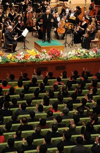 團(tuán)長(zhǎng)梅塔介紹,樂(lè)團(tuán)會(huì)先演奏朝鮮和美國(guó)國(guó)歌,其它曲目包括德國(guó)作曲家瓦格納的代表作歌劇《尼博龍根的指環(huán)》序曲第三章、捷克作曲家德伏夏克在美國(guó)創(chuàng)作的《第九交響曲》等。