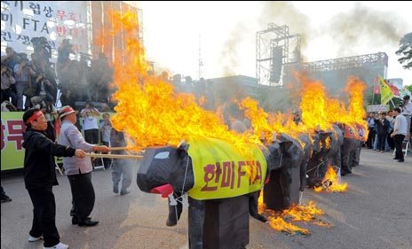 韓民眾繼續(xù)抗議進口美國牛肉 警方逮捕37人(圖)