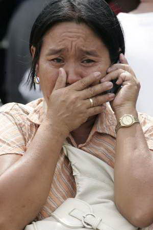 “群星公主”號(hào)渡輪乘客和船員親屬在宿務(wù)等待消息時(shí)對(duì)蘇爾皮西歐船運(yùn)公司的雇員尖叫。一位婦女對(duì)該公司的一名雇員稱(chēng):“你無(wú)法讓我們的親人回來(lái),你應(yīng)當(dāng)對(duì)此負(fù)責(zé)!碧K爾皮西歐船運(yùn)公司稱(chēng),它將向每位遇難者的家屬支付20萬(wàn)比索(4500美元)的賠償,向幸存者支付一定數(shù)量的金錢(qián)。(黃歡)