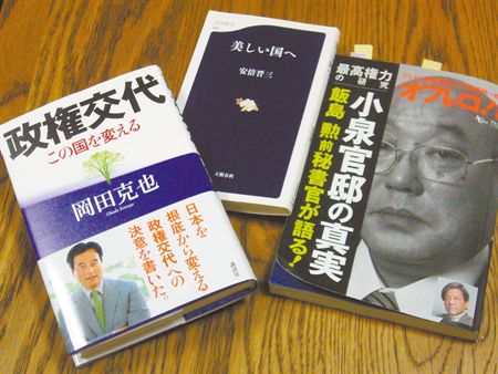在野的民主黨黨魁小澤一郎在政黨輪替呼聲高的06年一口氣出版《小澤主義》和《剛腕維新》2本書,民主黨副黨魁岡田克也《政權輪替》也在為執政敲邊鼓。