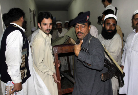 報道指,一名人彈駕駛一輛裝滿炸藥的汽車沖進白沙瓦北部Charsadda警察局,引發爆炸。