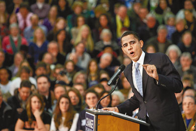 奧巴馬在艾州黨派會議勝出后氣勢如虹,轉戰新州乘勝追擊,他繼續大打變革牌,向支持者承諾為國家帶來轉變,希望新州選民支持他,“四天后的新州,你有機會令美國改變”。