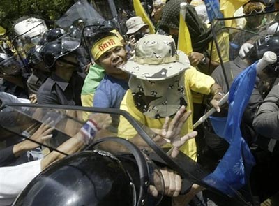 此次反政府活動(dòng)是由泰國人民民主聯(lián)盟(民盟)組織的。示威者和警察的對(duì)峙使得總理府周邊區(qū)域陷入混亂,道路的交通完全中斷,學(xué)校停課,總理府各部門不得不放假一天。