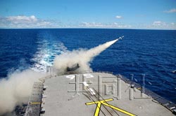 日本海上自衛隊的宙斯盾艦“霧島”號在環太平洋聯合軍演中發射防空導彈。