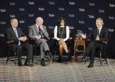據(jù)“中央社”報道,布萊爾2007年卸下首相職位后改信天主教,擔(dān)任首相期間公開談?wù)撟约盒叛龅拇螖?shù)也越來越多。他預(yù)計在耶魯大學(xué)授課五次,19日是第一次。