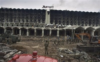 遭自殺式炸彈襲擊后的萬(wàn)豪大酒店。