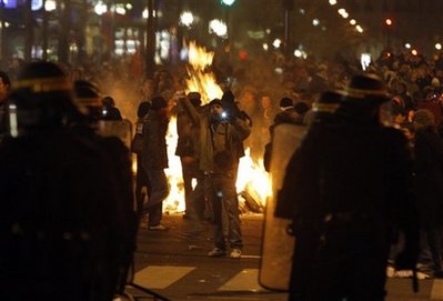 中新網(wǎng)1月30日電 據(jù)香港星島環(huán)球網(wǎng)報(bào)道,法國(guó)全國(guó)有逾百萬(wàn)人在29日罷工,抗議總統(tǒng)薩科齊處理金融危機(jī)的手法未能令工人受惠。在巴黎,示威演變成騷亂,示威者在商業(yè)大街?jǐn)S玻璃樽和放火,更與警方爆發(fā)推撞,警方施放催淚氣體驅(qū)散群眾。