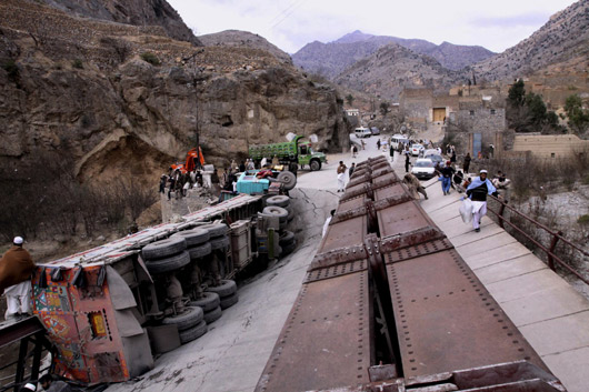 隨著美國計(jì)劃派遣3萬名士兵進(jìn)入阿富汗,通過巴基斯坦的補(bǔ)給線成為五角大樓最重要的課題之一。有75%的補(bǔ)給物資由巴基斯坦進(jìn)入阿富汗。這些物資首先通過海運(yùn)抵達(dá)巴基斯坦南部港口卡拉齊,然后沿著公路北上,最終抵達(dá)阿首都喀布爾。據(jù)統(tǒng)計(jì),每天有至少300輛卡車經(jīng)卡巴通道出入阿富汗,不過,美軍的武器彈藥不經(jīng)卡巴通道運(yùn)輸。