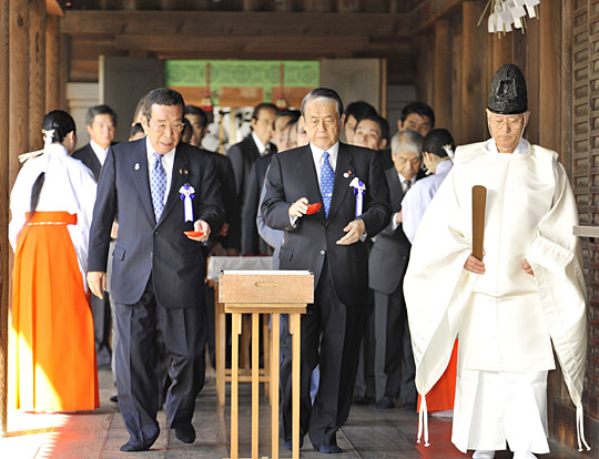 日本政府方面除財(cái)務(wù)副大臣竹下亙、文部科學(xué)省副大臣山內(nèi)俊夫、經(jīng)濟(jì)產(chǎn)業(yè)省副大臣高市早苗外,內(nèi)閣府的宇野治、法務(wù)省的早川忠孝、厚生勞動省的戶井田徹、農(nóng)林水產(chǎn)省的江藤拓及野村哲郎、國土交通省的西銘恒三、防衛(wèi)省的岸信夫等7名政務(wù)官也前往參拜。