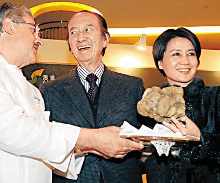 何鴻燊去年以約256萬港元投得一顆一點五公斤的世紀白松露菌王,并舉行盛大餐舞會,與嘉賓分享愛心白松露菌,成為一時佳話。而昨晚除拍賣菌王之外,四地亦同時舉行16份較小型的白松露菌拍賣,參與嘉賓均踴躍競投,澳門方面更投得八顆,連同何鴻燊的“菌王”,一共籌得183萬元,四地善款合共達222萬港元。