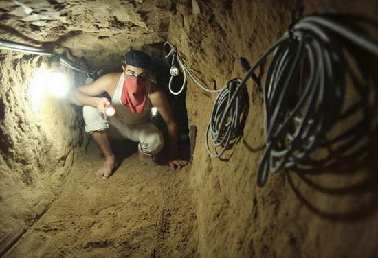 由于埃及官方希望停止向加沙地區(qū)輸送武器的活動,拉法現(xiàn)在逐漸成為全埃及警力最多的地區(qū)。一個聲稱是走私販的當(dāng)?shù)厝苏f,由于日益嚴(yán)格的安全檢查,武器走私變得非常冒險(xiǎn)。以色列戰(zhàn)機(jī)近日已經(jīng)對地道發(fā)動了日以繼夜的轟炸,不遺余力想要阻斷一切運(yùn)往加沙的槍支、炸彈和現(xiàn)金。但哈馬斯非常精于為這些地道找掩護(hù),他們將地道的出口和入口建于各種各樣的設(shè)施和高樓之中,甚至有些設(shè)施就是為此目的而建造起來的。目前以色列發(fā)動地面進(jìn)攻后,為了避免引來殺身之禍,哈馬斯已經(jīng)不再使用移動電話和汽車。年輕的哈馬斯武裝成員阿耶門-塔哈說,“我們的人和領(lǐng)導(dǎo)層在加沙的通訊從來不曾中斷過,我們已經(jīng)為任何可能爆發(fā)的地面戰(zhàn)爭做好了準(zhǔn)備。”很顯然,他是指的哈馬斯領(lǐng)導(dǎo)人安然置身于加沙城下的地道之中。