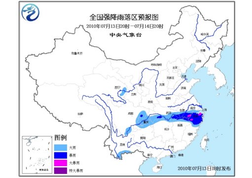 中新網(wǎng)7月13日電 中央氣象臺7月13日18時繼續(xù)發(fā)布暴雨橙色預警:預計,7月13日20時到7月14日20時,湖南北部、湖北東部和南部、安徽南部、江西北部、浙江大部等地有大到暴雨,其中,安徽南部、浙江北部和西部等地的局部地區(qū)有大暴雨;四川東部和南部、重慶中南部、貴州北部、云南南部和東北部、青海東北部等地的部分地區(qū)有大雨、局地暴雨。上述局部地區(qū)并伴有短時雷雨大風等強對流天氣。