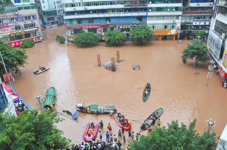 截至昨晚7點(diǎn)半,途經(jīng)達(dá)州城區(qū)的洪水水位已達(dá)到282.61米,超過(guò)警戒水位4.7米,洪水使整個(gè)達(dá)州城超過(guò)1/3的面積進(jìn)水,濱河路淹到二樓,全城大面積停水,逾5000家門(mén)市的貨物轉(zhuǎn)移。達(dá)州河市機(jī)場(chǎng)也進(jìn)水。