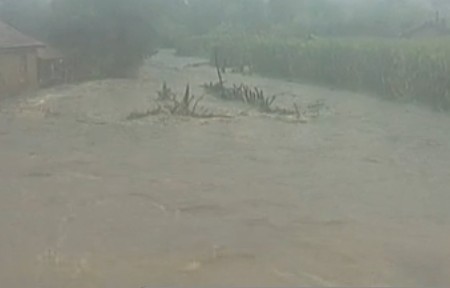 記者:我現在的位置是在小蒲柴河村的北面,您可以看見我旁邊有一條非常湍急的河流,這條河流您可能想象不到的是,其實在這場暴雨來臨之前它是并不存在的,昔日這塊地方是一片很大的菜園子,如今您還可以通過我右手邊的這個玉米地感受到昔日菜園的景象,但是由于一場暴雨,一夜之間,昔日的菜園變成如今的這樣的一條河谷,而由于這條河谷的存在,可以說從今以后每年到汛期來臨的時候,小蒲柴河村的村民們都會面臨著生命和財產的威脅。