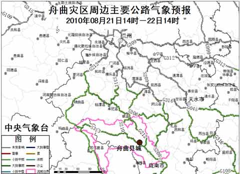 舟曲周邊主要公路仍有降雨,路滑注意安全。具體預(yù)報(bào)如下: