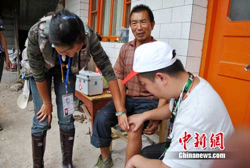 記者正在與薛新民保交談時,來自銀川的劉志和北大外科系的王健幾個自愿者剛好來到了,劉志拿著保健箱為薛新民保檢查了一下身體,他的腿有點痼疾外,身體還算健康。