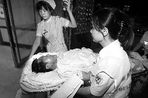 昨晚7時30分,北大三院門口五六輛救護車分別開進大門,多名保安把守大門。醫院工作人員將傷者送進搶救室接受救治,傷員情況較好。