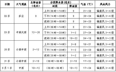 8月28日至9月1日舟曲縣精細(xì)化天氣預(yù)報如下表: