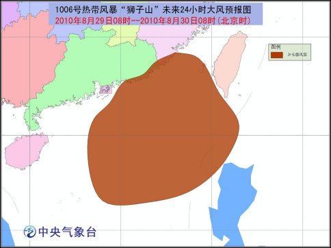 中新網8月29日電 據中央氣象臺網站消息,中央氣象臺于8月29日10時繼續發布臺風藍色預警,2010年第6號熱帶風暴“獅子山”的中心將以每小時5至10公里的速度向偏北方向移動,強度逐漸加強,并向廣東東部到福建南部沿海靠近。29日中午到30日中午,南海北部、廣東東部沿海、福建南部沿海將有6至7級大風。
