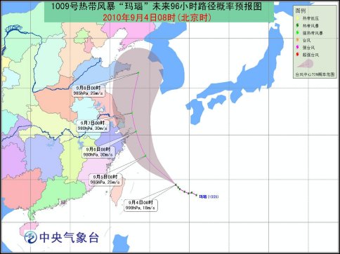 今年第9號熱帶風暴“瑪瑙”于9月3日下午在西北太平洋洋面上生成,4日08時其中心位于浙江象山東南方大約860公里的洋面上,就是北緯24.4度,東經128.3度,中心附近最大風力有8級(18米/秒),中心最低氣壓998hPa。