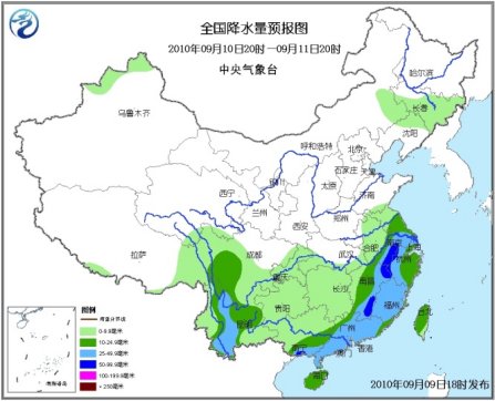 9日20時至10日20時,青海東南部、西藏大部、陜西東南部、內蒙古東南部、吉林、遼寧、黃淮、江淮、江漢、江南、華南、西南地區大部等地有小到中雨或陣雨,其中,川西高原南部、重慶東部、湖北西南部、貴州中北部和西部、云南東北部、浙江東部沿海和南部、福建、廣東中東部和西南部、廣西南部、海南、臺灣等地有大雨或暴雨,福建東南部、臺灣南部等地局部有大暴雨;另外,西藏東南部、江蘇東北部等地的部分地區有大雨;上述部分地區并伴有短時雷雨大風等強對流天氣。新疆西北部、內蒙古中西部和東南部有4~5級風;廣東沿海、福建沿海、浙江南部沿海等地有6~8級風。受“莫蘭蒂”的影響,臺灣海峽、臺灣以東洋面和以南海域、南海北部有7~8級大風,“莫蘭蒂”中心經過的附近海域風力有9~11級,陣風可達12~13級;東海南部有5~7級東南風。