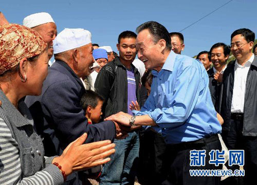 2010年9月14日為了讓貧困地區群眾的生活一天天好起來——全國人大常委會重點督辦代表涉“水”建議 促進解決寧夏中南部地區民生難題紀實因為一個“水”字,寧夏中南部地區的人們在干旱中“苦瘠甲天下”千百年。因為一個“水”字,全國人大常委會一直牽掛著生活在那里的260萬各族群眾。確保飲水安全、發展節水農業、促進生態移民、關注環境保護……從2005年至今,全國人大常委會緊扣“水”字重點督辦有關代表建議,極大促進了寧夏中南部地區最大民生難題的解決。 2010年9月10日至14日,中共中央政治局常委、全國人大常委會委員長吳邦國來到寧夏調研,走訪農戶、聽取匯報,實地檢查代表建議辦理效果,強調要著力推動解決寧夏中南部地區“水”的問題,讓困難群眾的生活一天天好起來…… 這是9月10日,吳邦國來到寧夏固原原州區開城鎮海溝村看望回族群眾。 新華社記者 饒愛民 攝