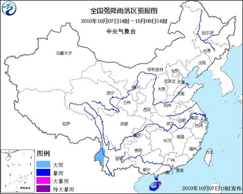 中央氣象臺10月7日10時繼續(xù)發(fā)布暴雨藍(lán)色預(yù)警:
