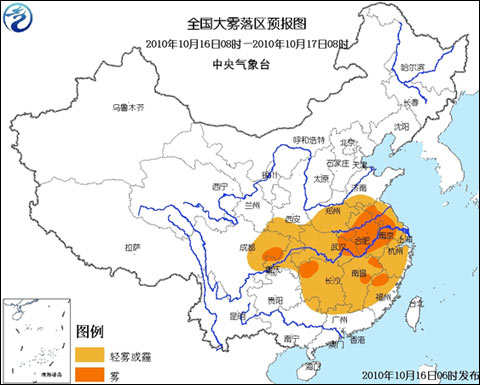 中新網10月16日電 中央氣象臺今晨6時繼續發布大霧藍色預警: