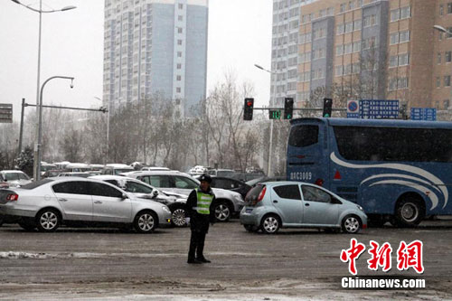 在長春市南北向主干道人民大街上,擁堵的車輛一眼望不到邊,駕車者焦急地觀望,卻很難向前行進一步。這種情況在長春市其他街道也都出現。市民殷女士告訴記者,知道今天下雪,她特意提前半小時從家中出發,但還是被堵在路上。“現在都9點多了,還不知道什么時候能到單位。”