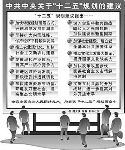 黨的十七屆五中全會通過的《中共中央關于國民經濟和社會發展第十二個五年規劃的建議》,為我國“十二五”時期奪取全面建設小康社會新勝利、開創中國特色社會主義事業新局面,提供了綱領性建議和指導性方針。“十二五”時期,是在科學發展的道路上繼續前行,開創科學發展新局面的重要時期。
