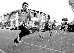 5月8日,蘆山中學高二體育特長生在進行變速跑訓練。蘆山人災后讓夢再起飛 。新華社發