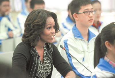 3月25日,美國總統奧巴馬夫人米歇爾·奧巴馬走進成都七中,熱情洋溢地發表了她首次訪華期間的第二場演講!傲己玫慕逃钦l都無法從你身上拿走的東西!”通過分享自己的求學經歷,米歇爾鼓勵年輕學子把握機會努力學習,用“才華、創造力和能量”解決人類共同面臨的問題。