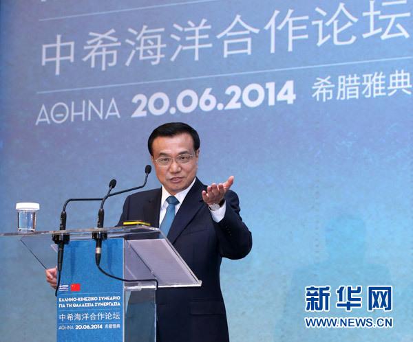 6月20日,國務院總理李克強在雅典與希臘總理薩馬拉斯共同出席中希海洋合作論壇并發表演講。新華社記者 龐興雷 攝