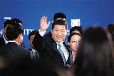 4日,首爾大學,習近平在演講后向聽眾揮手致意。
