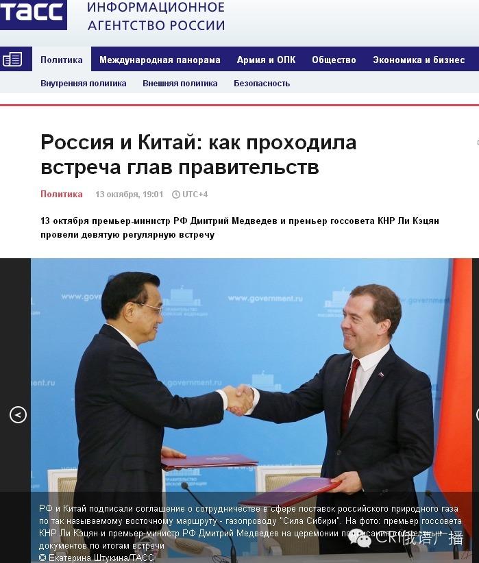 俄羅斯三大通訊社之一俄通社-塔斯社:用10張照片回顧和總結了李克強總理的莫斯科之行。
