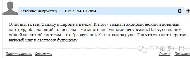 網友馬克西莫娃評論說:“下一步就該和美元說再見了!我非常高興地看到,俄羅斯與中國致力于長期合作。中國將在眾多領域取代美國,我們將擺脫美國的羈絆。美利堅再也不可能把我們踩在腳下了,因為向我們施壓的工具已經失效。”