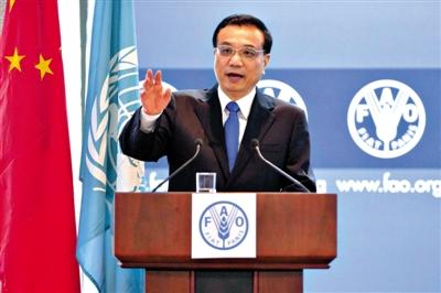 15日,李克強總理首次訪問糧農組織總部并發表演講。