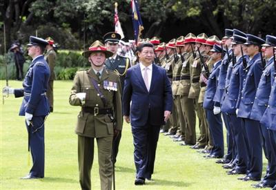 11月20日,國家主席習近平在惠靈頓出席新西蘭總督邁特帕里舉行的歡迎儀式。新華社記者 姚大偉 攝