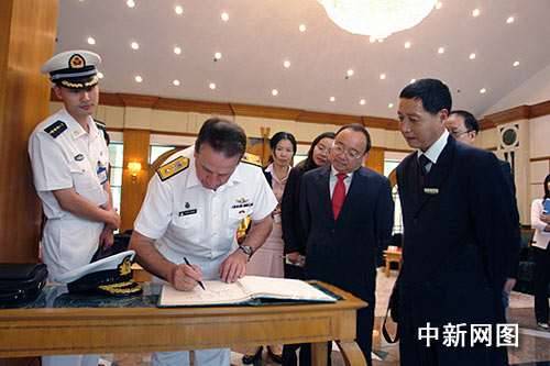 在題詞本上,大衛•安森準將寫下了“感謝你們對新西蘭皇家海軍的盛情款待,致以最良好的祝愿”的句子。最后,雙方還互贈了禮物以作紀念。