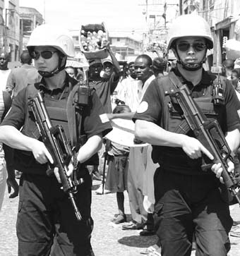 2006年9月至11月,海地太子港國家一號公路接連發(fā)生60多起搶劫、綁架事件。同年12月22日,聯(lián)合國海地穩(wěn)定特派團組織開展代號“新森林”的聯(lián)合清剿行動,中國防暴隊派出數(shù)十名隊員和兩輛裝甲車參與行動。