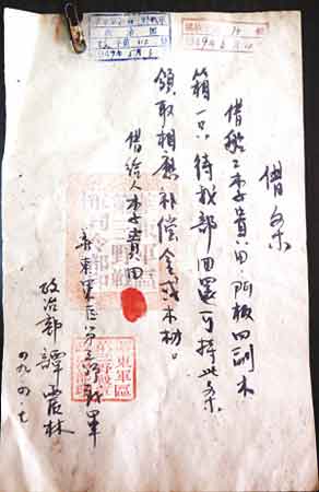 原副總理譚震林渡江時借條:門板四副木箱一只(圖)